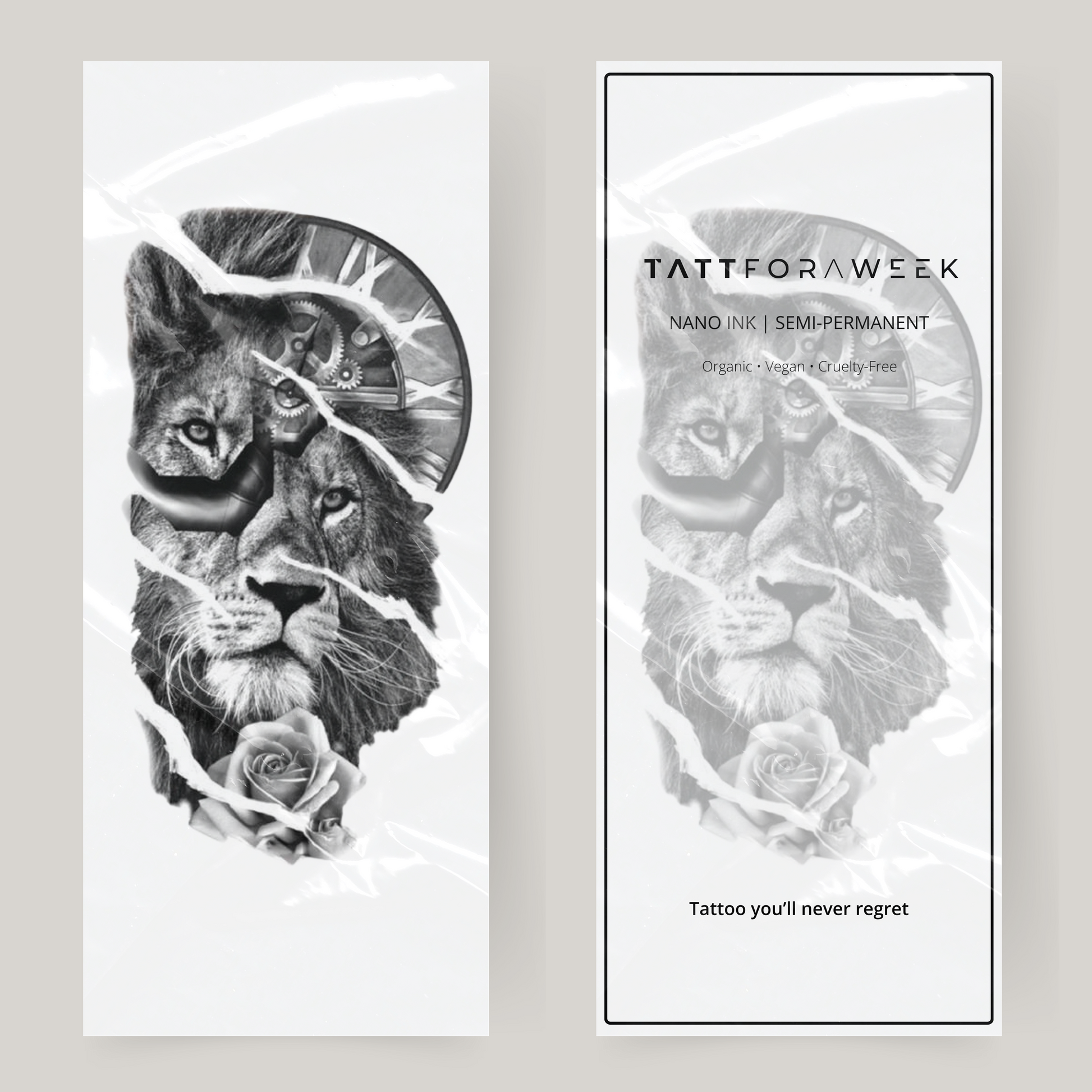 Prova en lejon & klocka tatuering, utan permanenta konsekvenser. Sitter kvar i upp till 2 veckor.