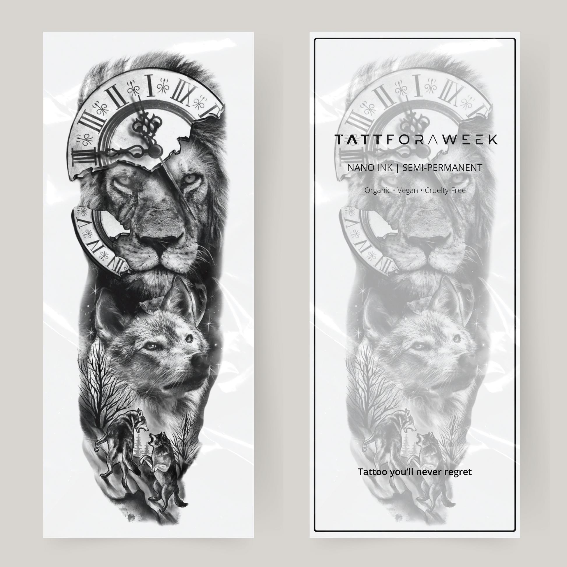 Falsk tatuering ärm lejon & räv