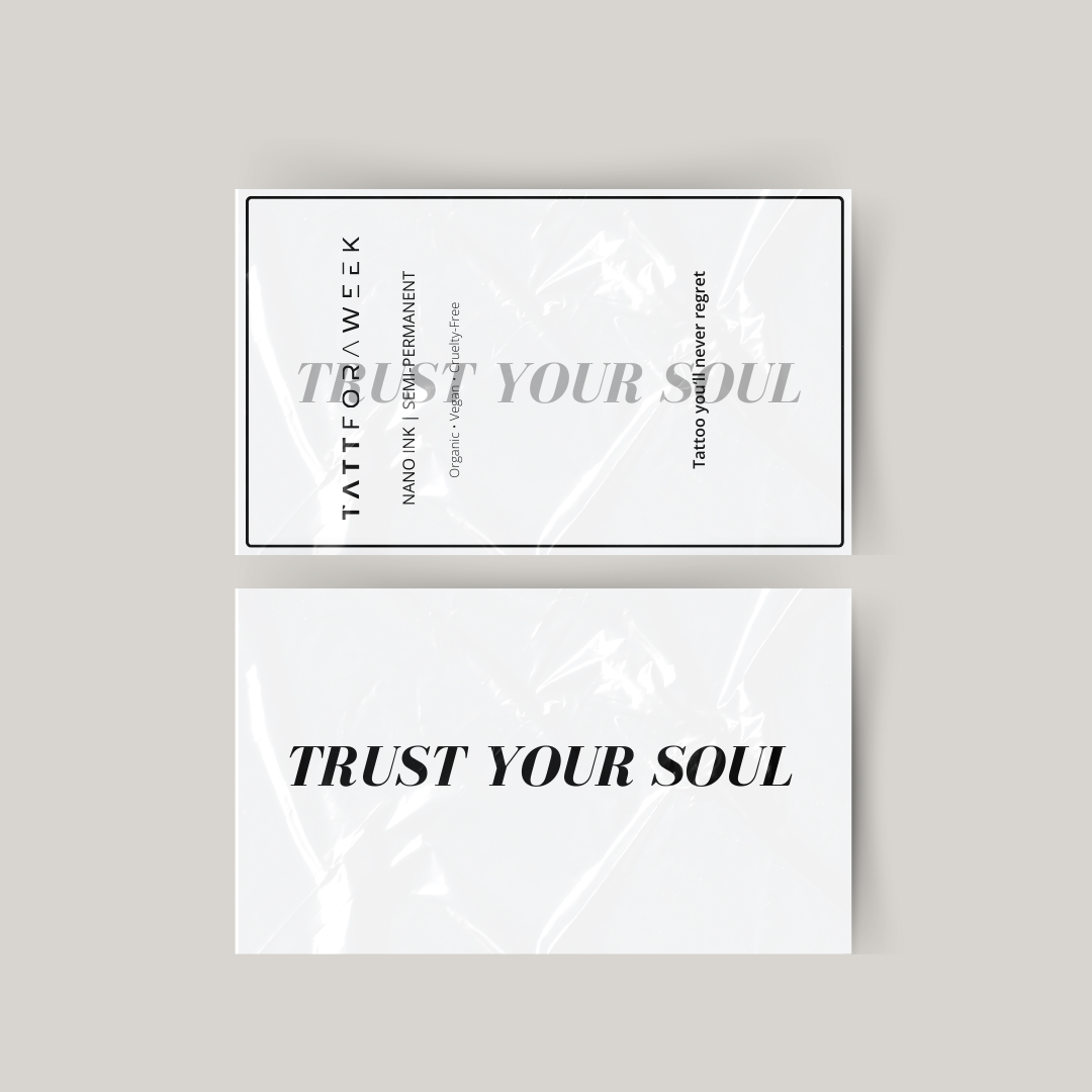 En tillfällig trust your soul tatuering kan sitta i upp till 2 veckor.